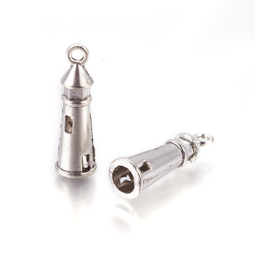 Lighthouse Charm. 25 x 8mm. Metal. Silver Color. Sold Individually.