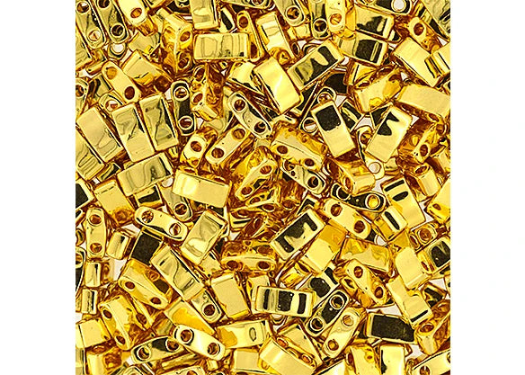 Miyuki HALF TILA Beads. 5x2.3mm. 2 hole. *Gold Opaque. *24k Gold Plated. (5.2gr Vial).