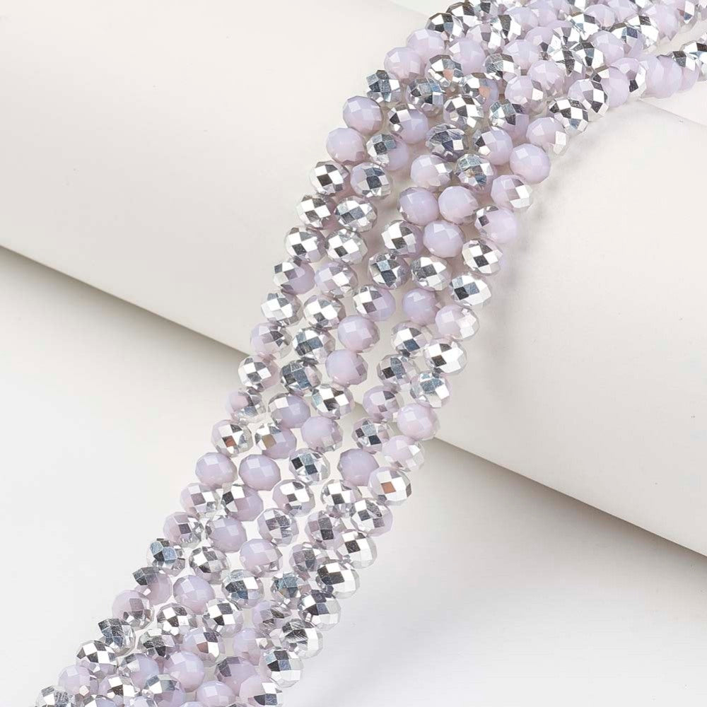 3 x 2mm Electroplate Glass Beads Strands, Half Gray Plated, Faceted, Rondelle, Thistle Base. Hole: 0.8mm, Approx 185 beads. (Copy)