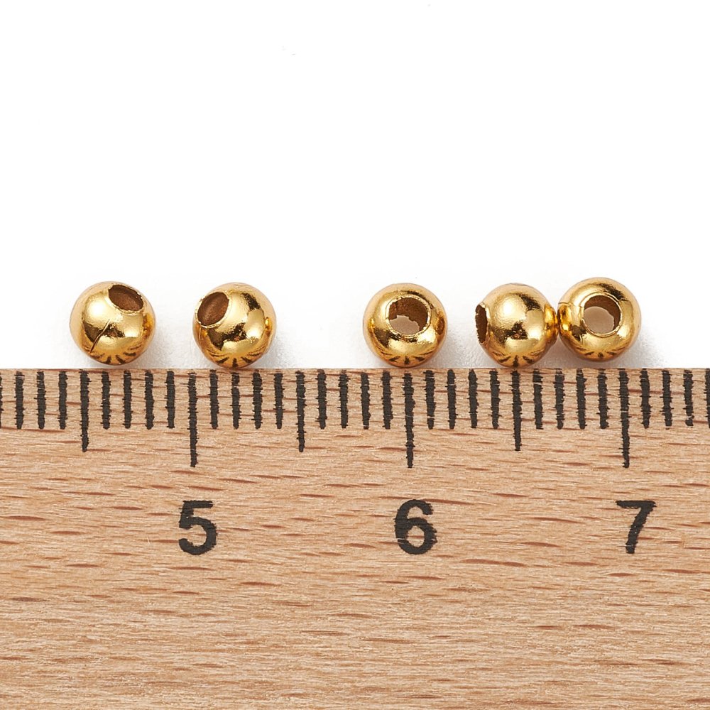 304 Stainless Steel Beads, Round, Real 24K Gold Plated, 4x3.5~4mm, Hole: 1.5mm *Packed100 Beads.