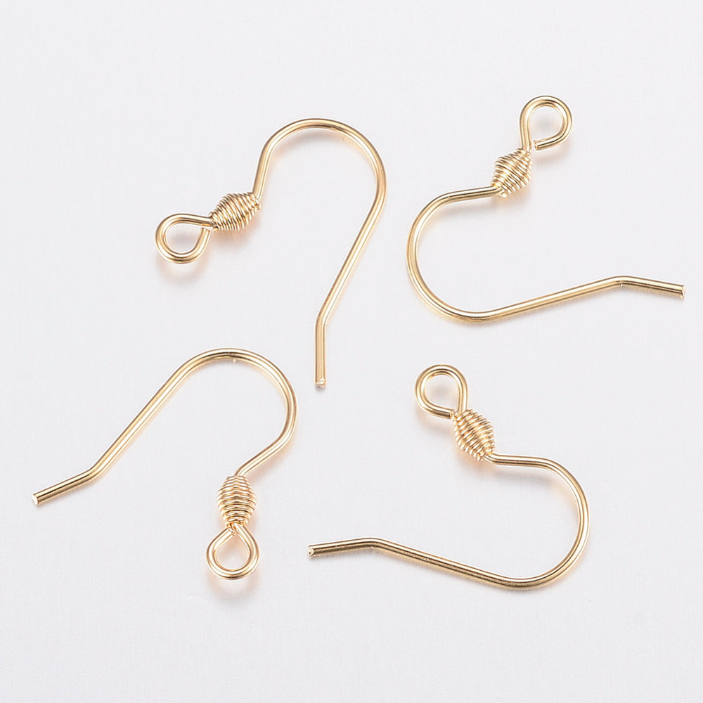 304 Stainless Steel Earring Hooks, Ear Wire, Golden, 17x18x2.4mm, Hole: 1.8mm, Pin: 0.7mm *Packed 10 (5 Sets)