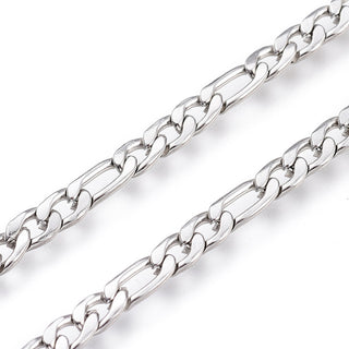 304 Stainless Steel Figaro Chain, Stainless Steel Color, Link: 9x4x0.8mm and 6.5x4x0.8mm, *Sold by the Foot