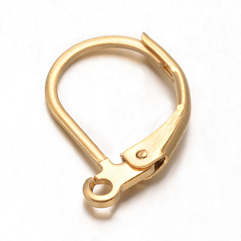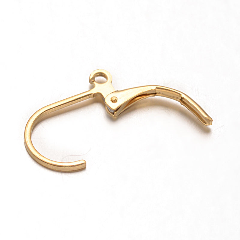 304 Stainless Steel Leverback Earring Findings, with Loop, Golden, 16x10x0.8mm, Pin: 0.7x0.6mm, Hole: 1mm(Packed 10 ear wires- 5 sets)