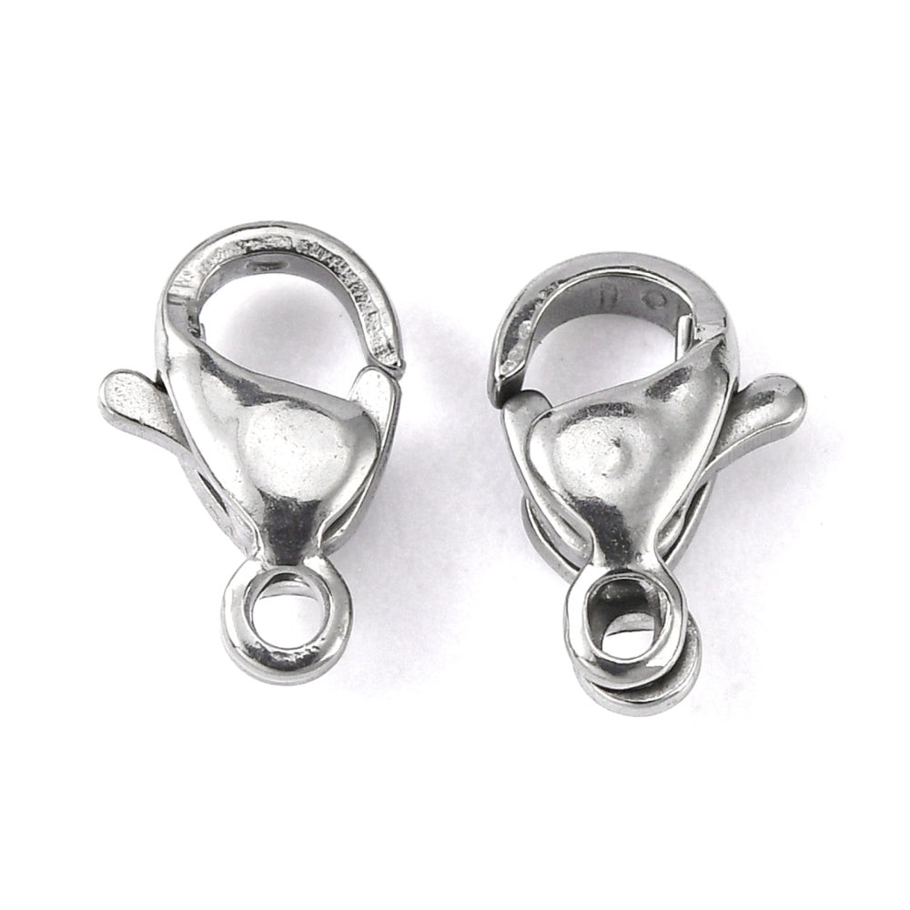 304 Stainless Steel Lobster Claw Clasps, Parrot Trigger Clasps, Stainless Steel Color, 9x6x3mm, Hole: 1mm (Packed 10 Clasps)