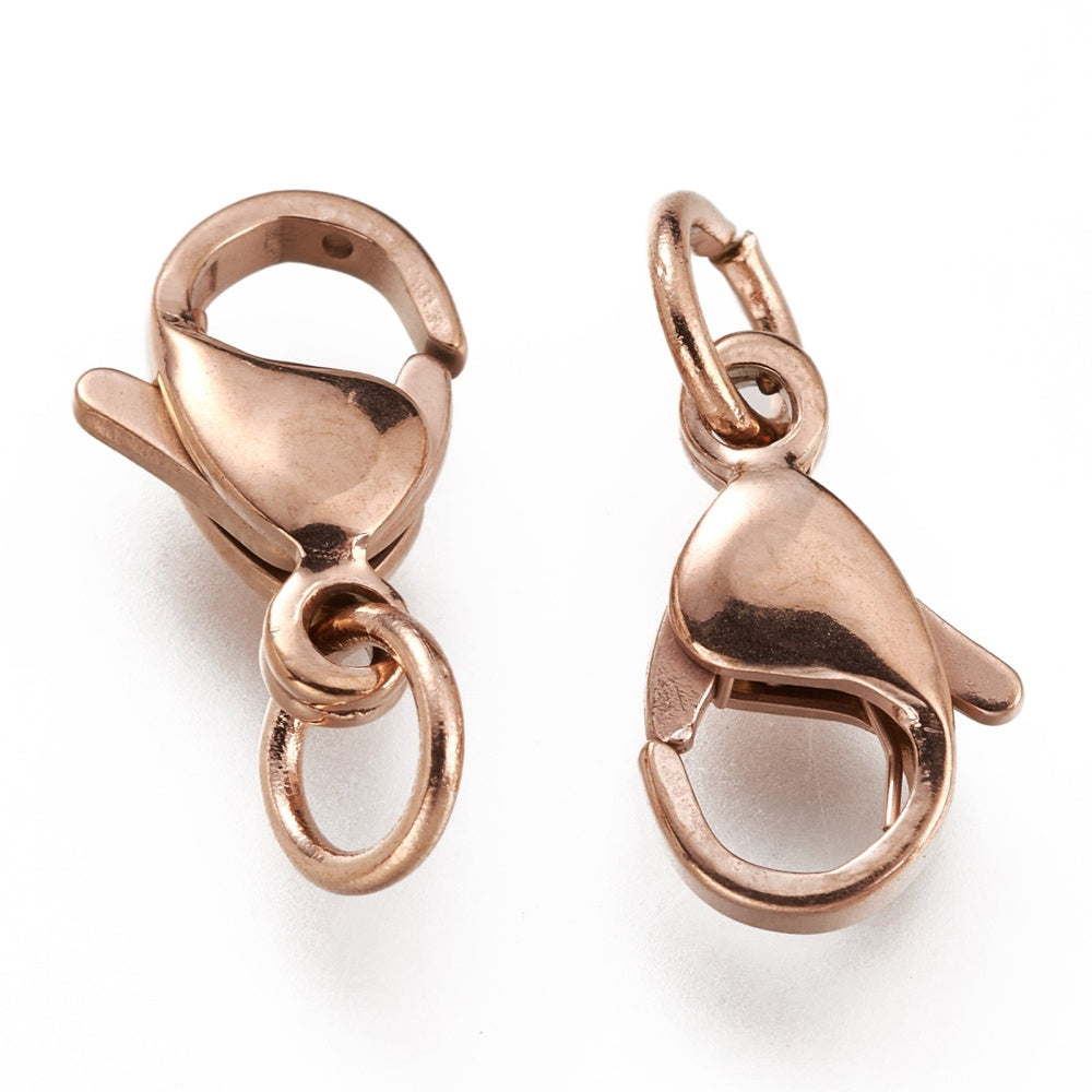 SKU: 24-304 Stainless Steel Lobster Claw Clasps, With Jump Ring, Rose Gold, 11x7x3mm, Hole: 3mm, Jump Ring: 5x0.6mm