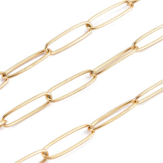 304 Stainless Steel Paperclip Chains, Golden, 10x2.5x0.5mm. Sold by the Foot