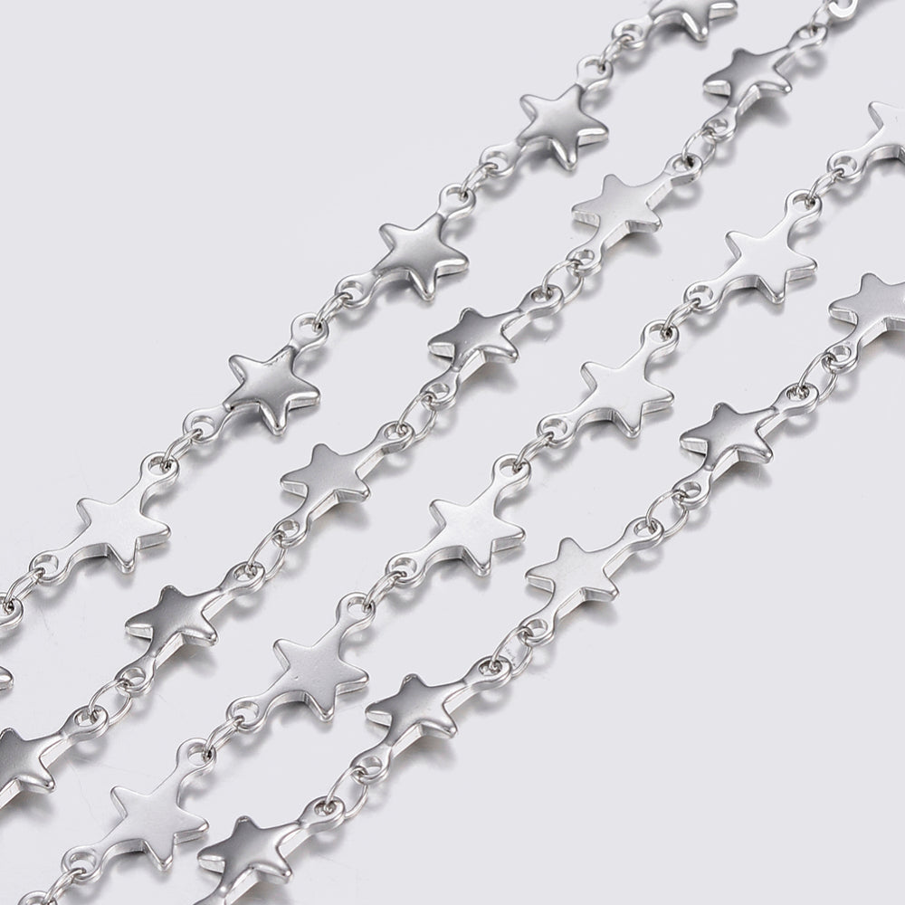 304 Stainless Steel STAR Link Chain. Soldered. 12 x 6 x 1mm. (Sold by the Foot)