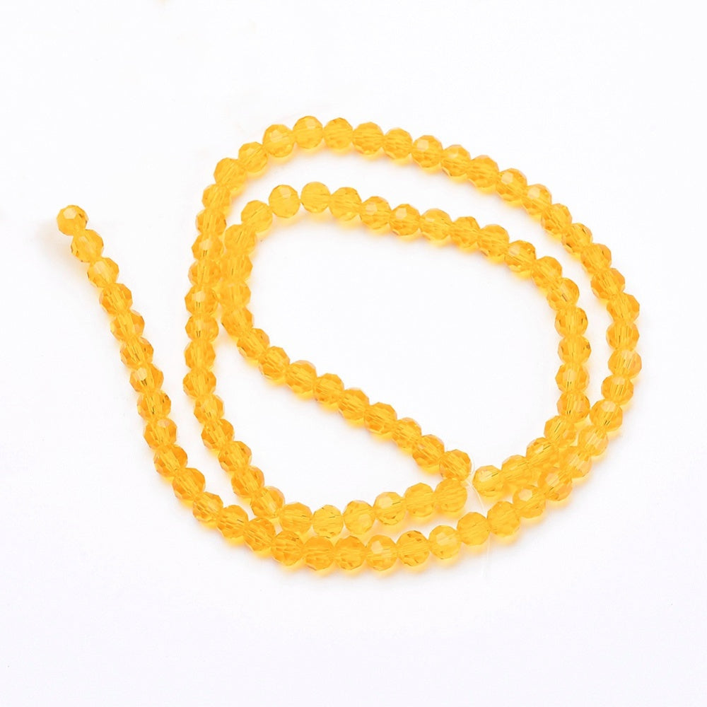 4mm Faceted Round Crystals *Golden Yellow. (approx 100 beads per 15" Strand)