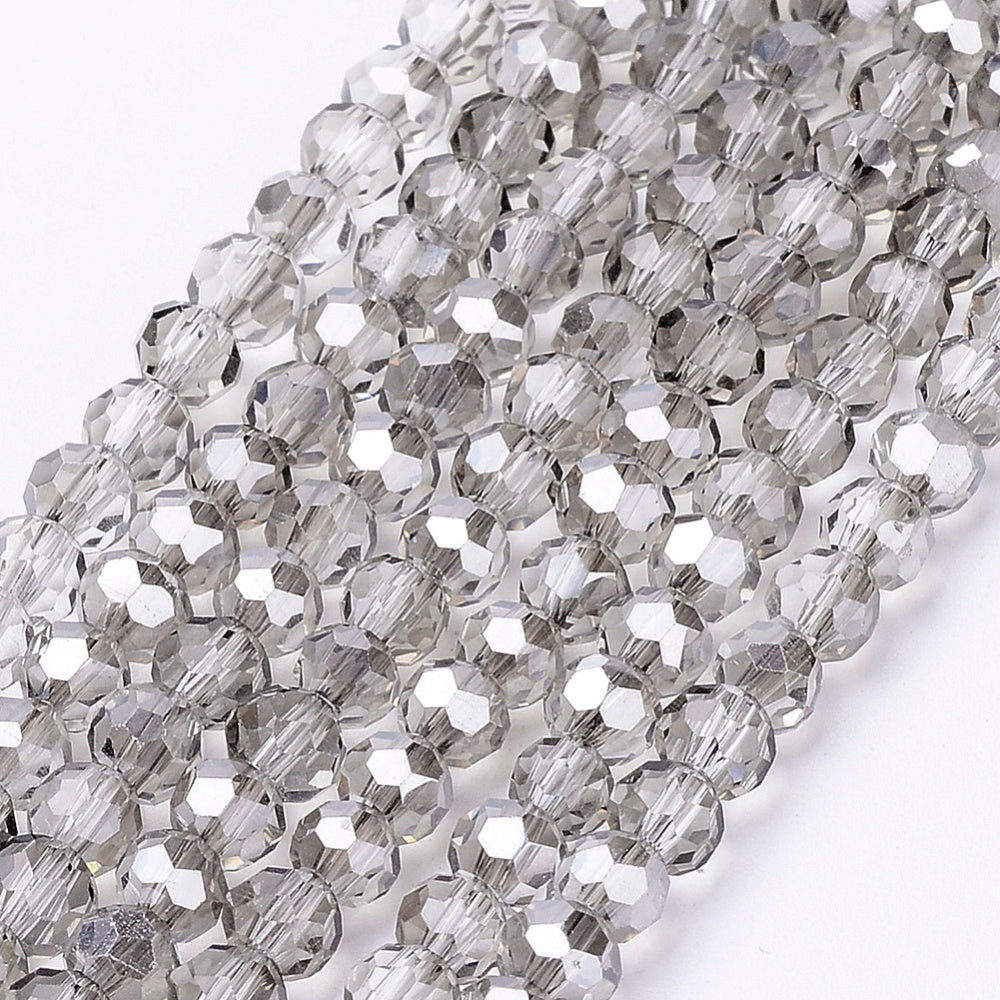 4mm Faceted Round Electroplated Crystals * Gainsboro (approx 100 beads per 15" Strand)