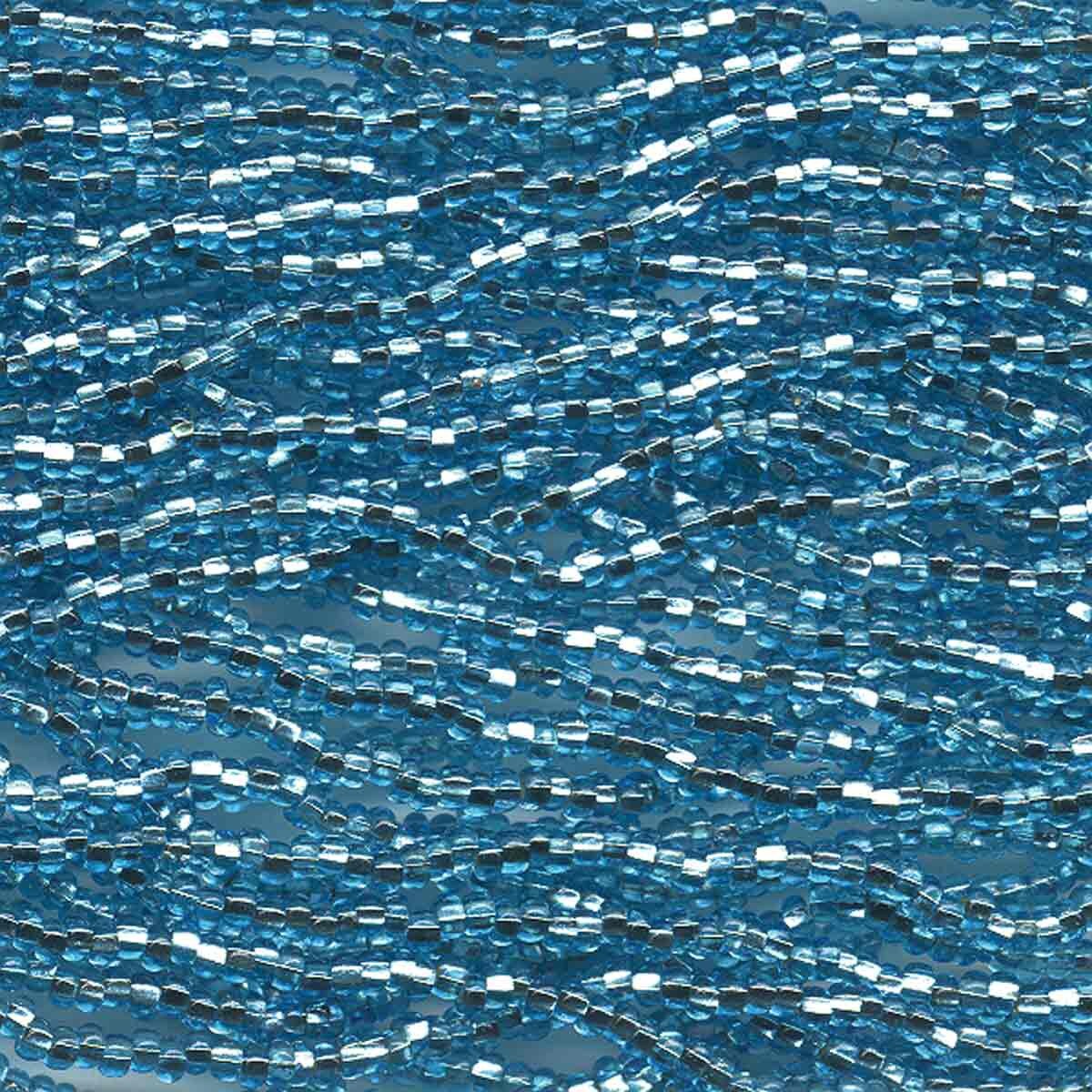 8/0 Czech (LT. Light AQUA S/L Silver Lined) 6 String/Hank *Approx 37 gr