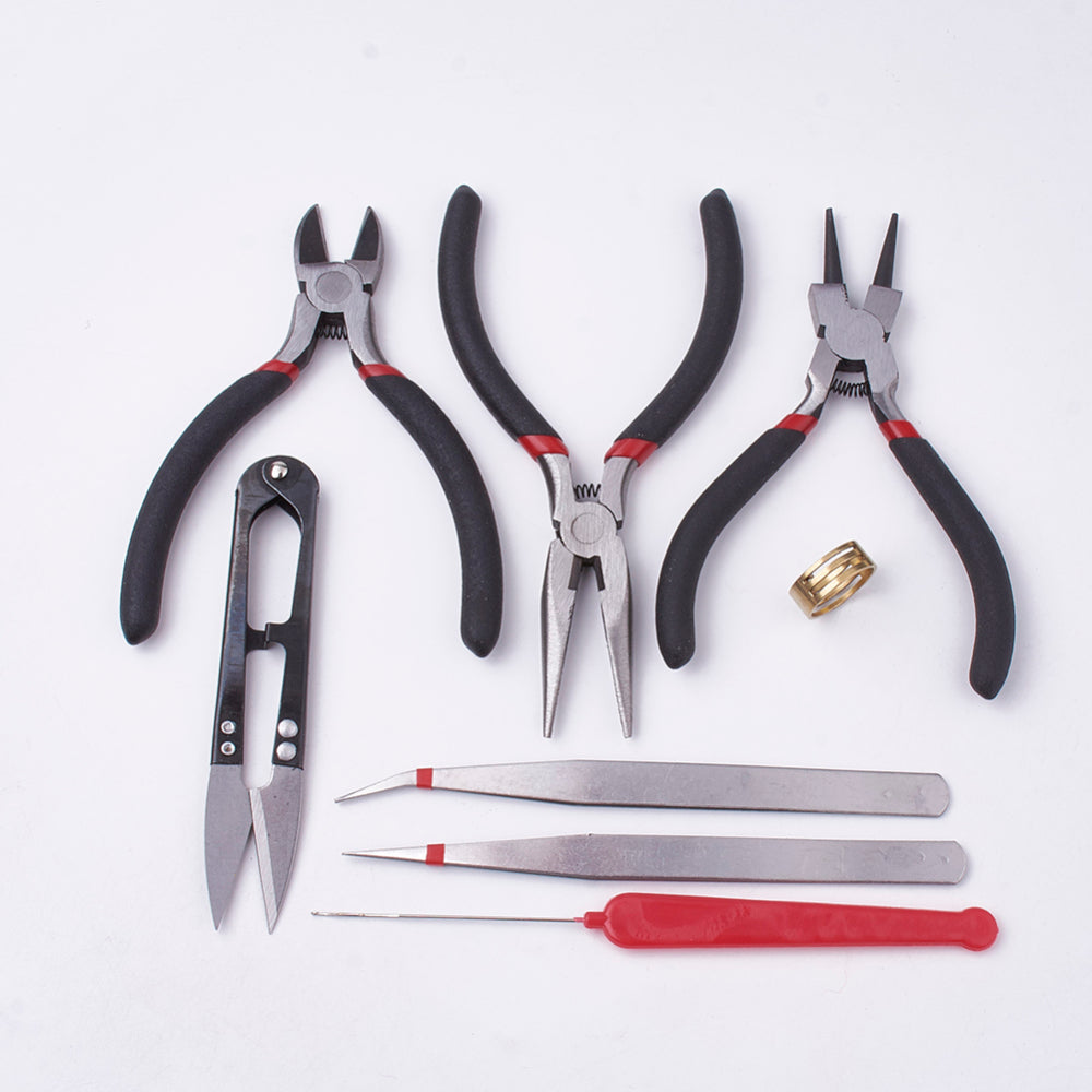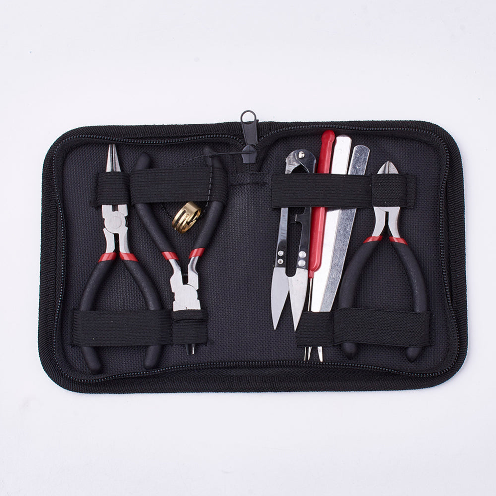 8Pcs DIY Jewelry Tool Sets, with Pliers, Scissor, Tweezers and Crochet Hook Needles, Black, 16x11.5x3cm, 8pcs/set