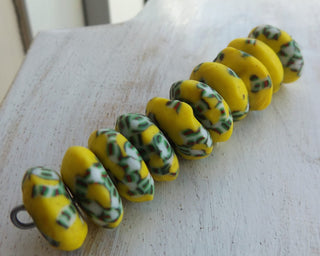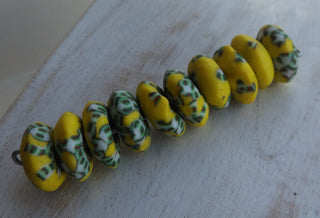 African Recycled Glass (Okata Beads) *Yellow with White/black/green accents (15mm Diam Size) *10 Beads
