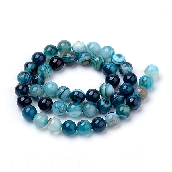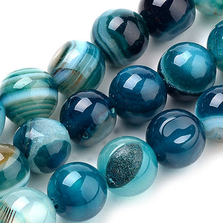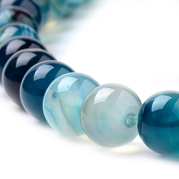 Agate (rounds) Striped/ Banded Blue. *16" Strand. See Drop Down for Size Options