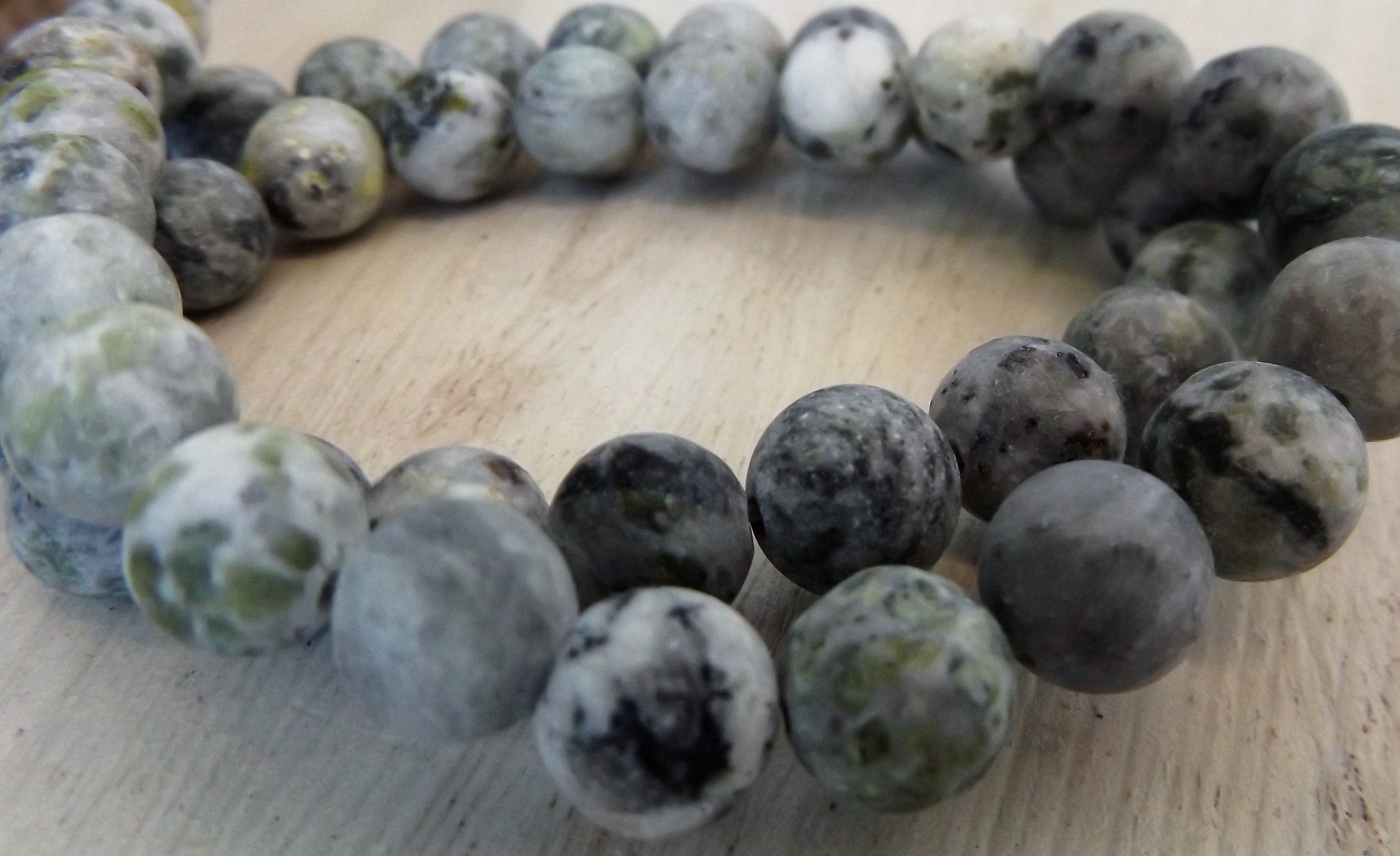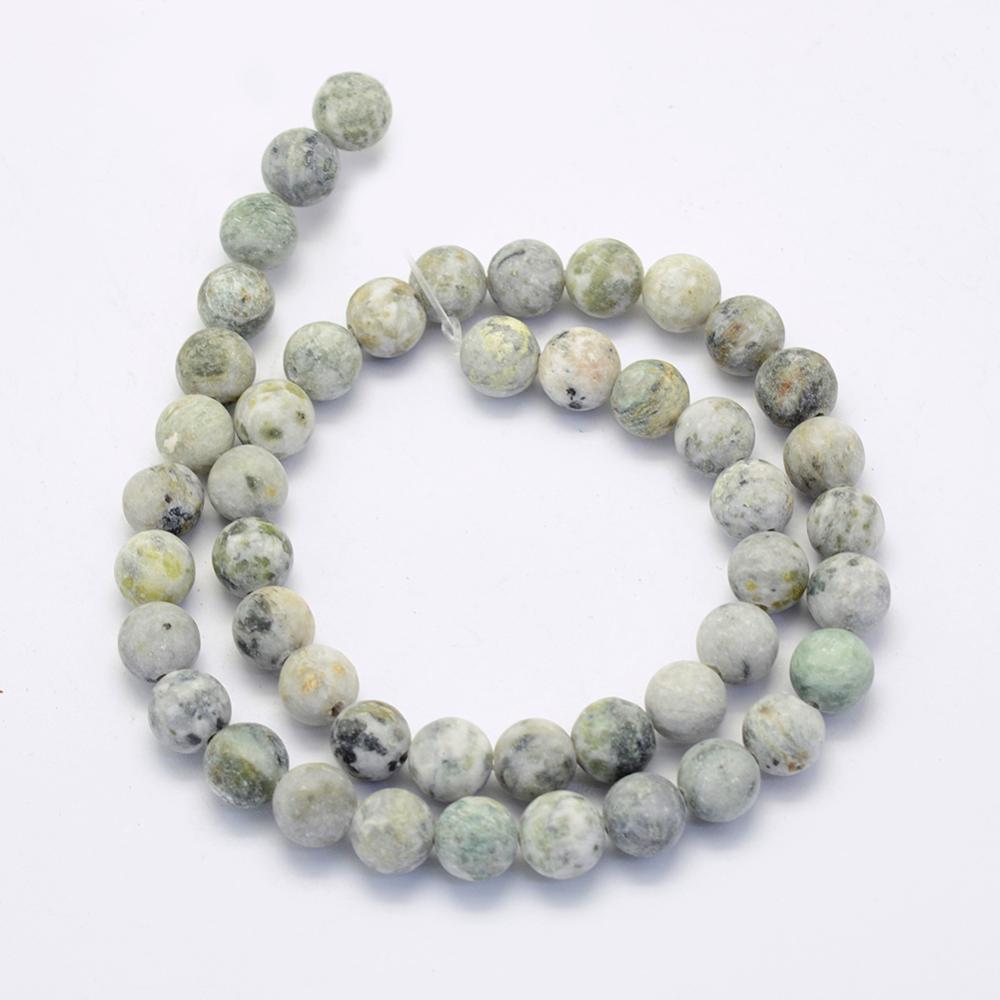 Agate (Crazy Agate) (8mm rounds) 15.5" strand. approx 43 beads. *Frosted Multi's (Subtle Greens in Grey)