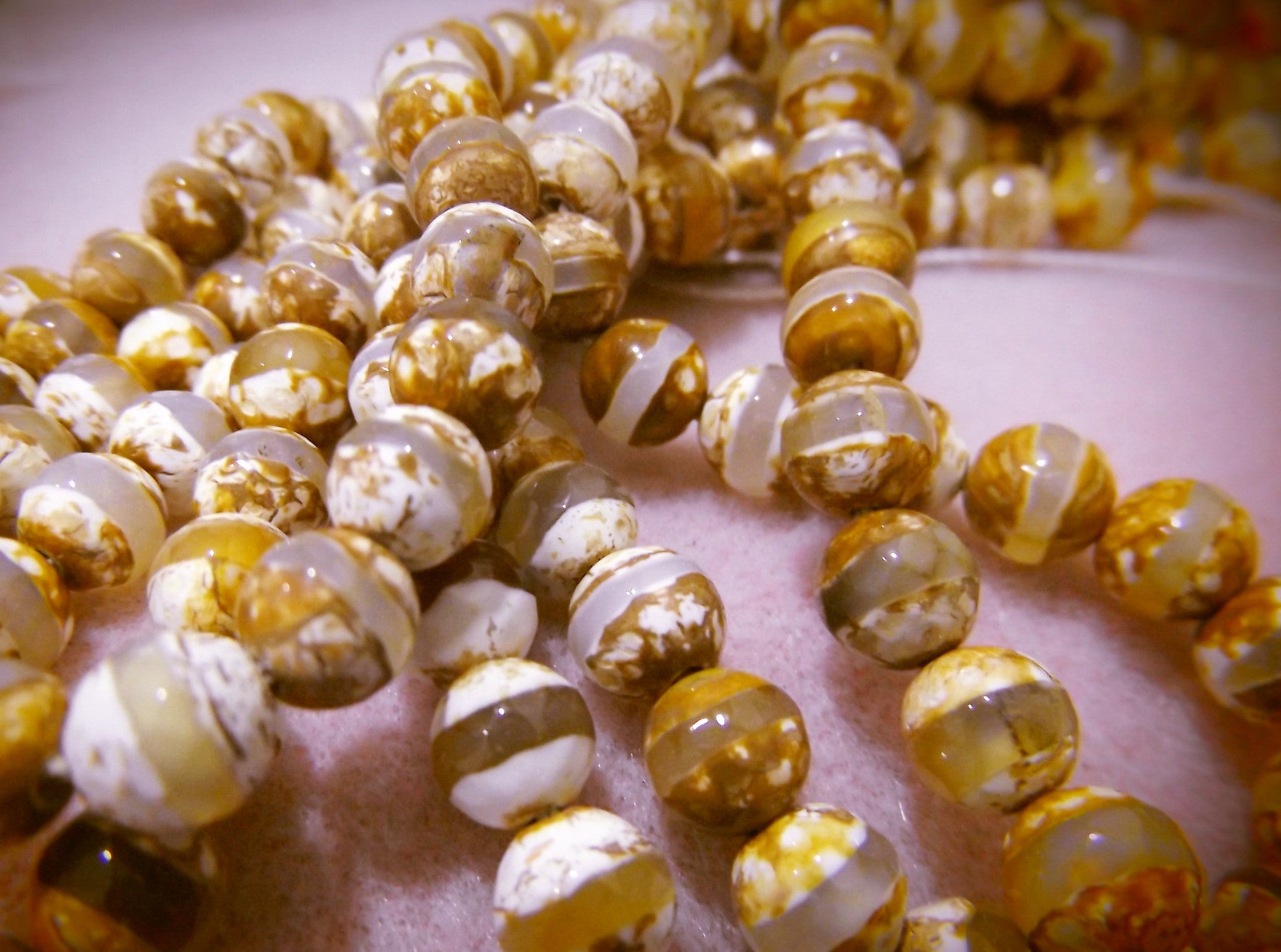 Agate (DZI Faceted Tibetan Style Rounds). Natural Creams/Tans with Banding. (See Drop down for Size Options)