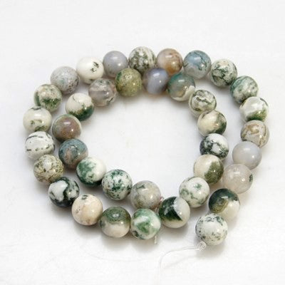 Agate (Tree Agate) 15.5" strand. (rounds) *See Drop Down for SIze Options. Natural Greens/tans/White