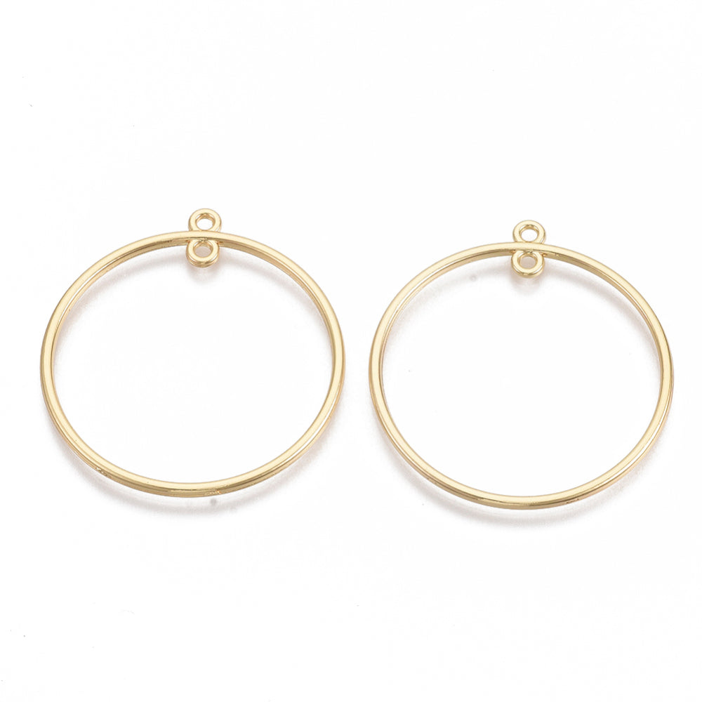 Alloy 2-Loop Link Pendants, Round Ring, Light Gold, 42.5x39x2mm, Hole: 1.8mm. (Packed 5 Rings)