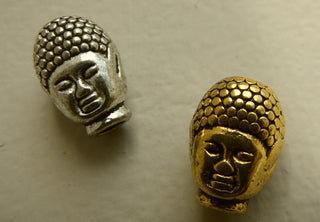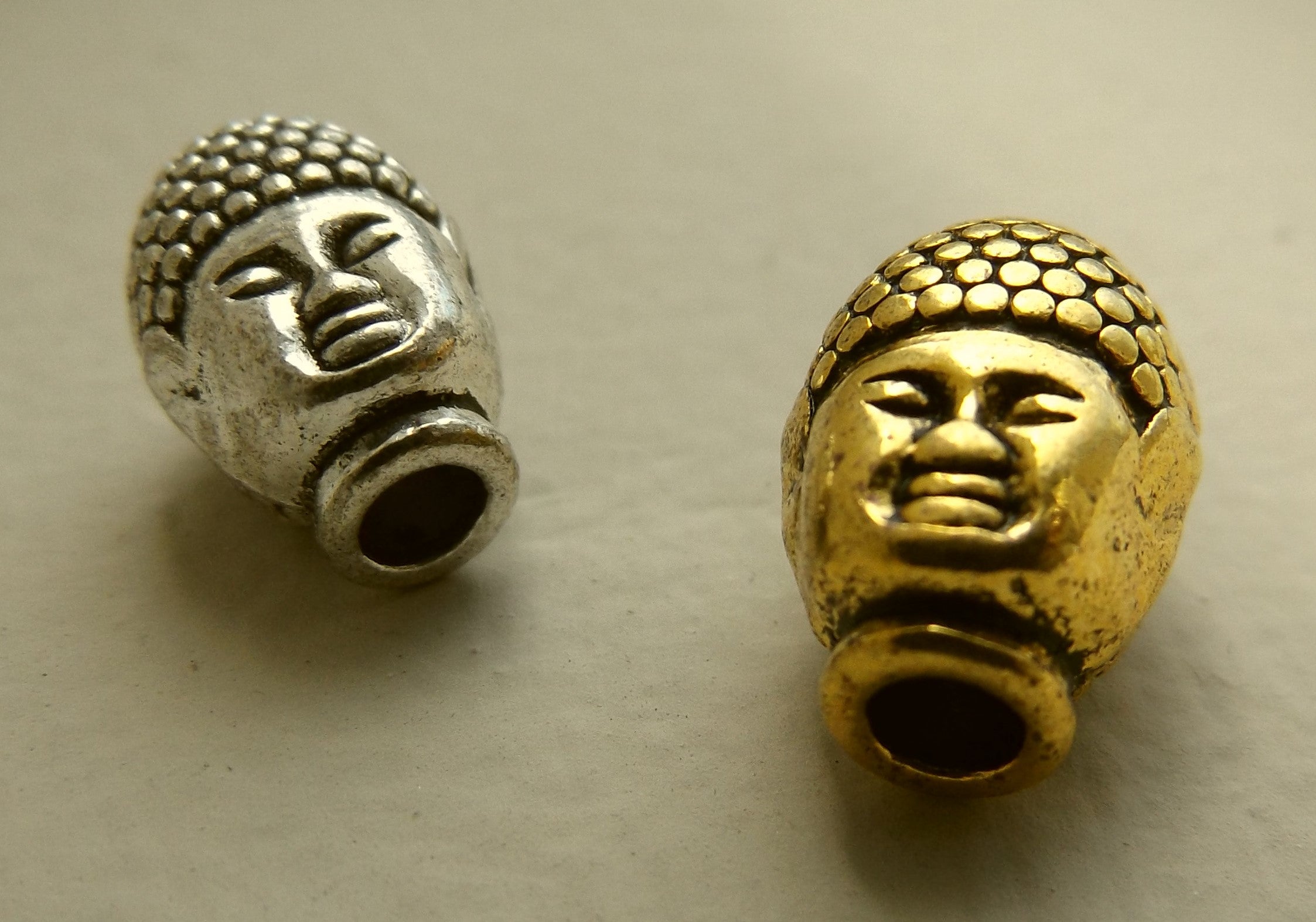 Alloy 3D Buddha Head A Beads, (Antique Gold or Silver Color), 12.5x9x8.5mm, Hole: 3mm
