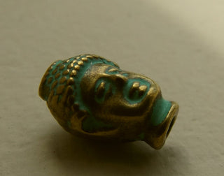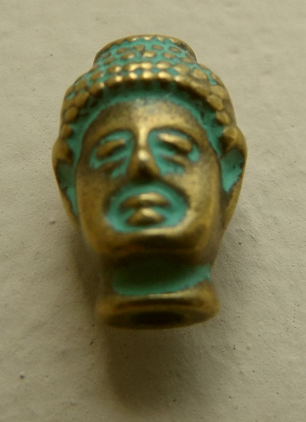 Alloy 3D Buddha Head Beads, (Antique Bronzed Green), 13x9x10mm, Hole: 1.5~2mm