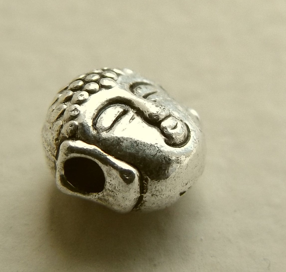 Alloy 3D Buddha Head *side hole Beads, (Antique Silver Color), *PACKED 10. 7x7.5x5.5mm, Hole: 1.5mm