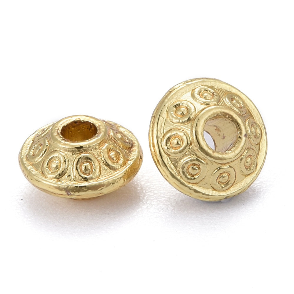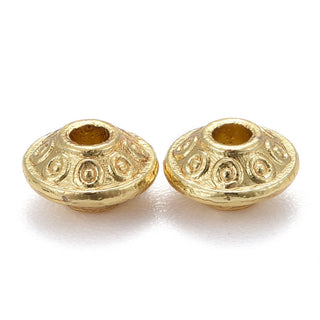Bicone, Real 18K Gold Plated metal Beads, 6.5x3.5mm, Hole: 1.5mm. (20 Beads)