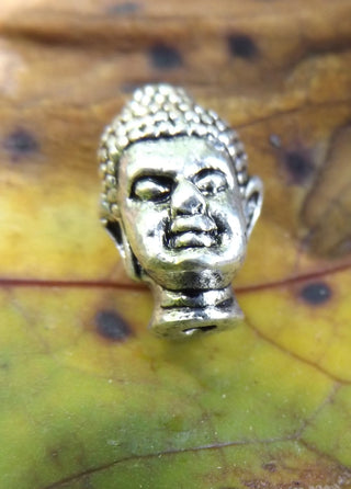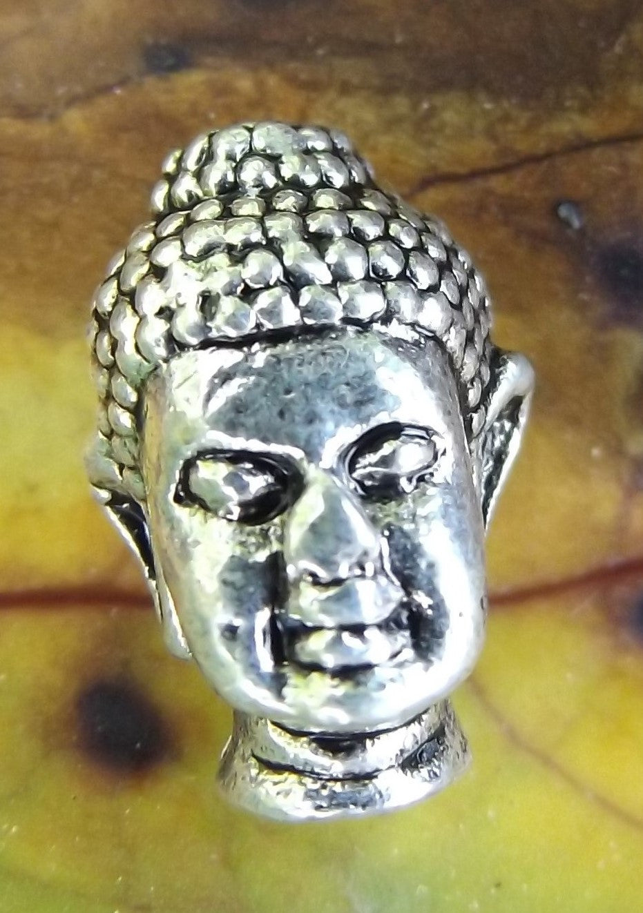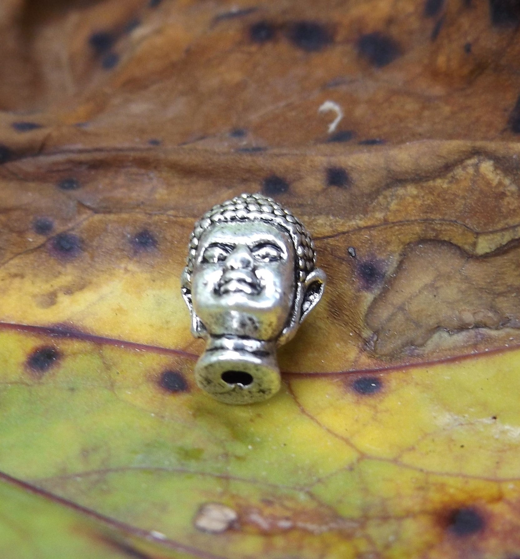 Buddha Head Beads (alloy) w/ Neck, Antique Silver, 13x9x10mm, Hole: 1.5~2mm