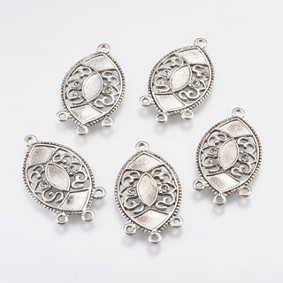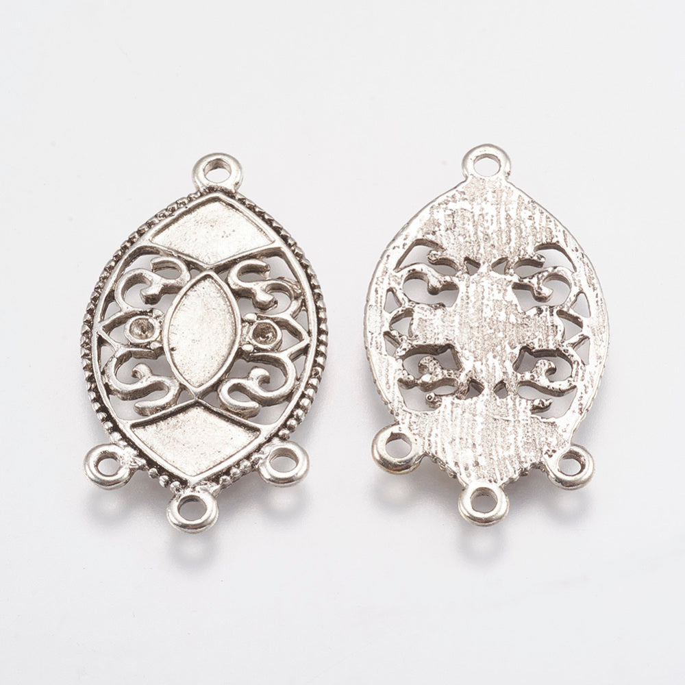 Alloy Cabochon Connector Settings for Enamel, Lead Free and Cadmium Free, Horse Eye, Chandelier style, Antique Silver, 35x19.5x2mm, Hole: 2mm (Packed 10)