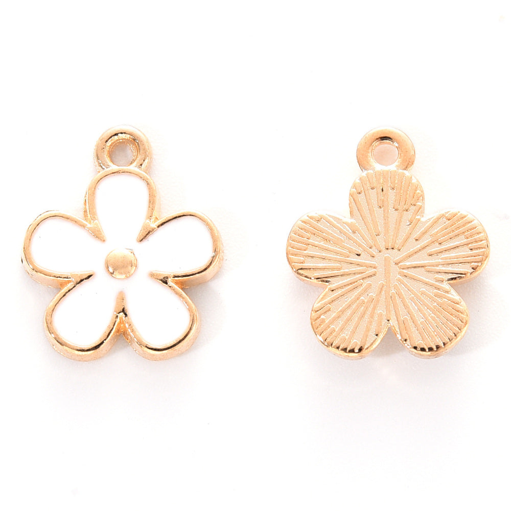 Alloy Enamel Charm, Light Gold, Flower, 15x13x2.5mm. Sold Individually. (See Drop Down for Color Options)