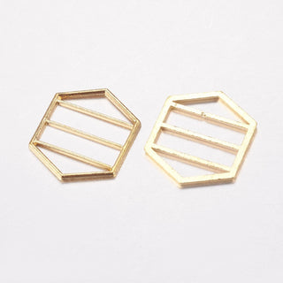 Alloy Filigree Joiners, Hexagon, Golden Color, 20x17x1mm (Packed 10 )