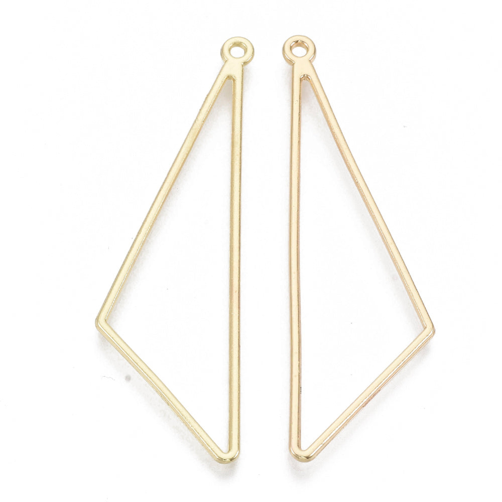 Alloy Open Back Bezel Big Pendants, Triangle, Light Gold Color, 57x17.5x1.5mm, Hole: 1.6mm (Packed 2) )