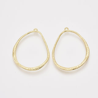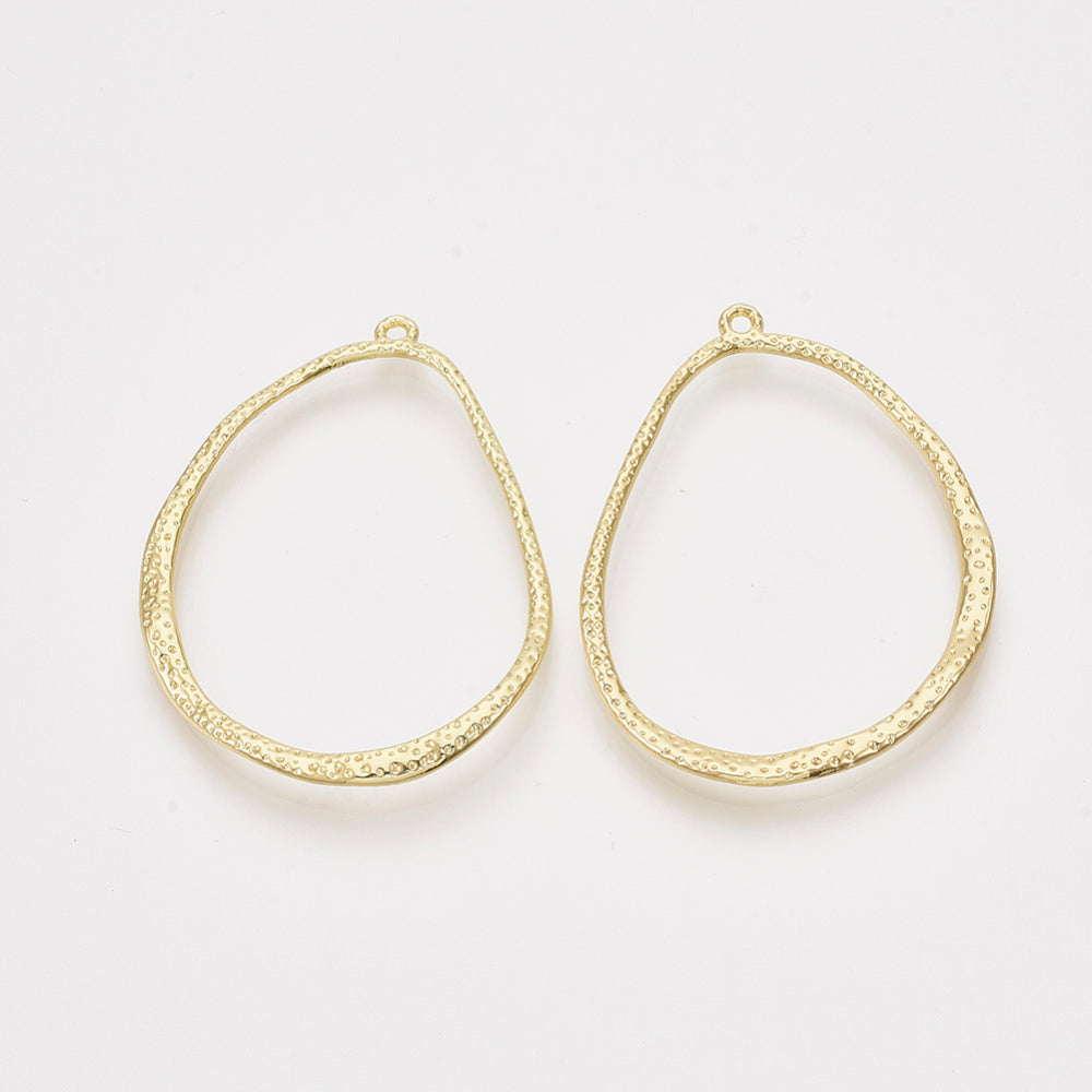 Alloy Open Back Bezel Pendants, Organic Teardrop, Light Gold, 48.5x35~36x3mm, Hole: 1.6mm(Packed 2)