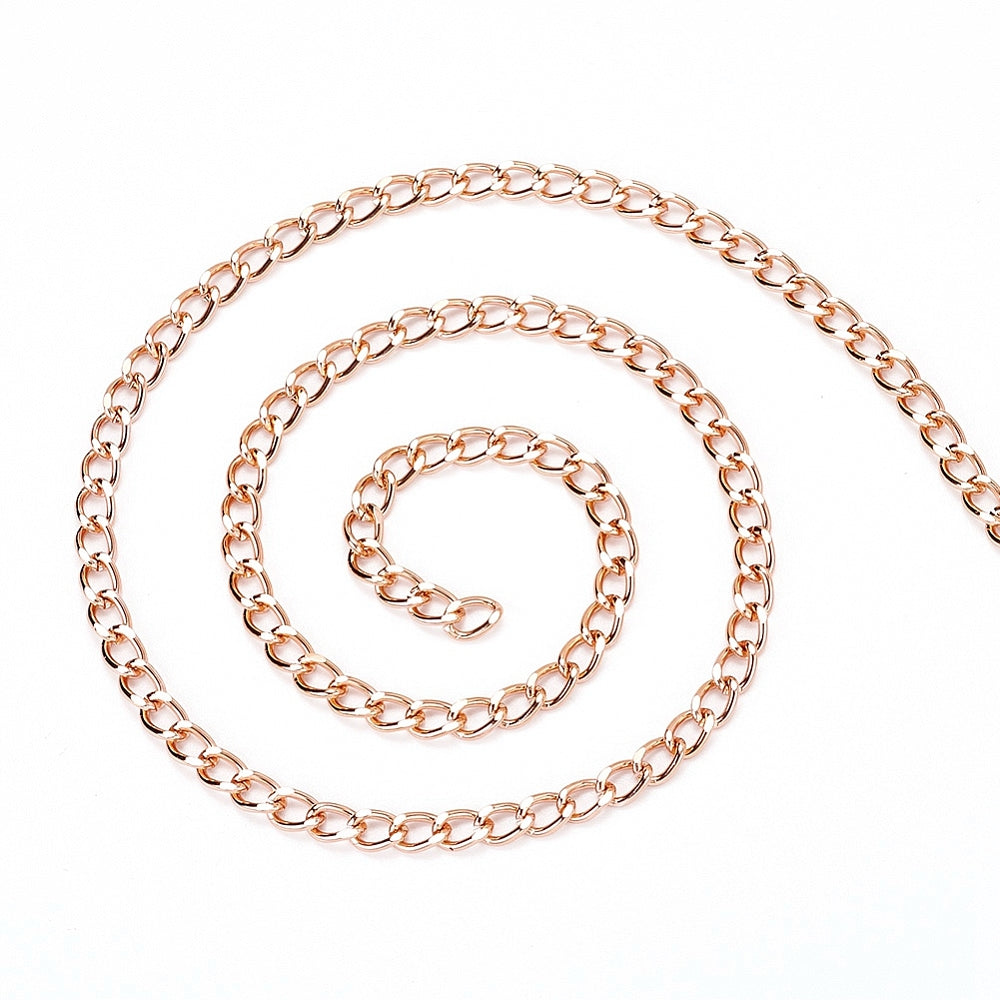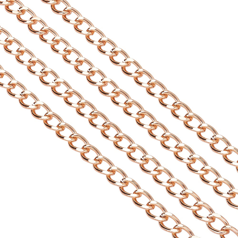 Aluminium Twisted Curb Chains, Diamond Cut Chains, Unwelded, Rose Gold, 10x6.5x1.8mm. *Sold by the Foot