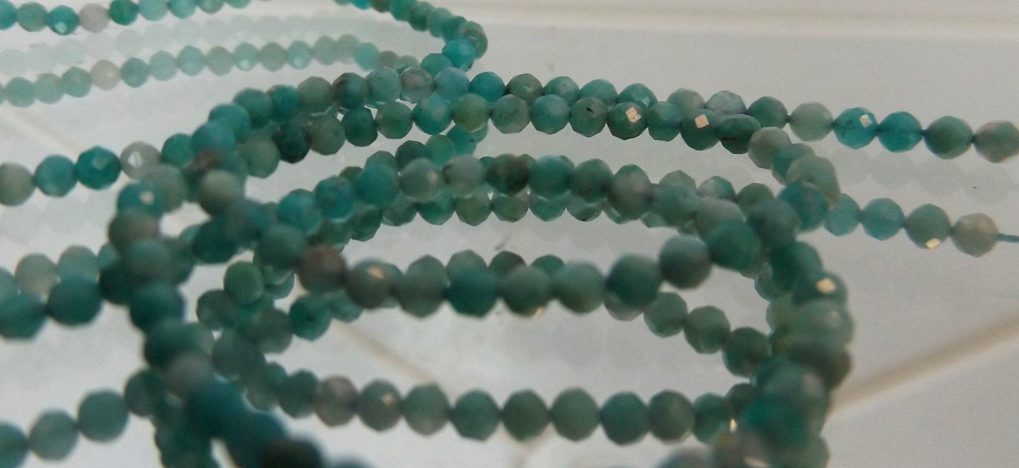 Amazonite 2mm Faceted Rounds (0.5mm hole) (16" strands) approx 200 beads