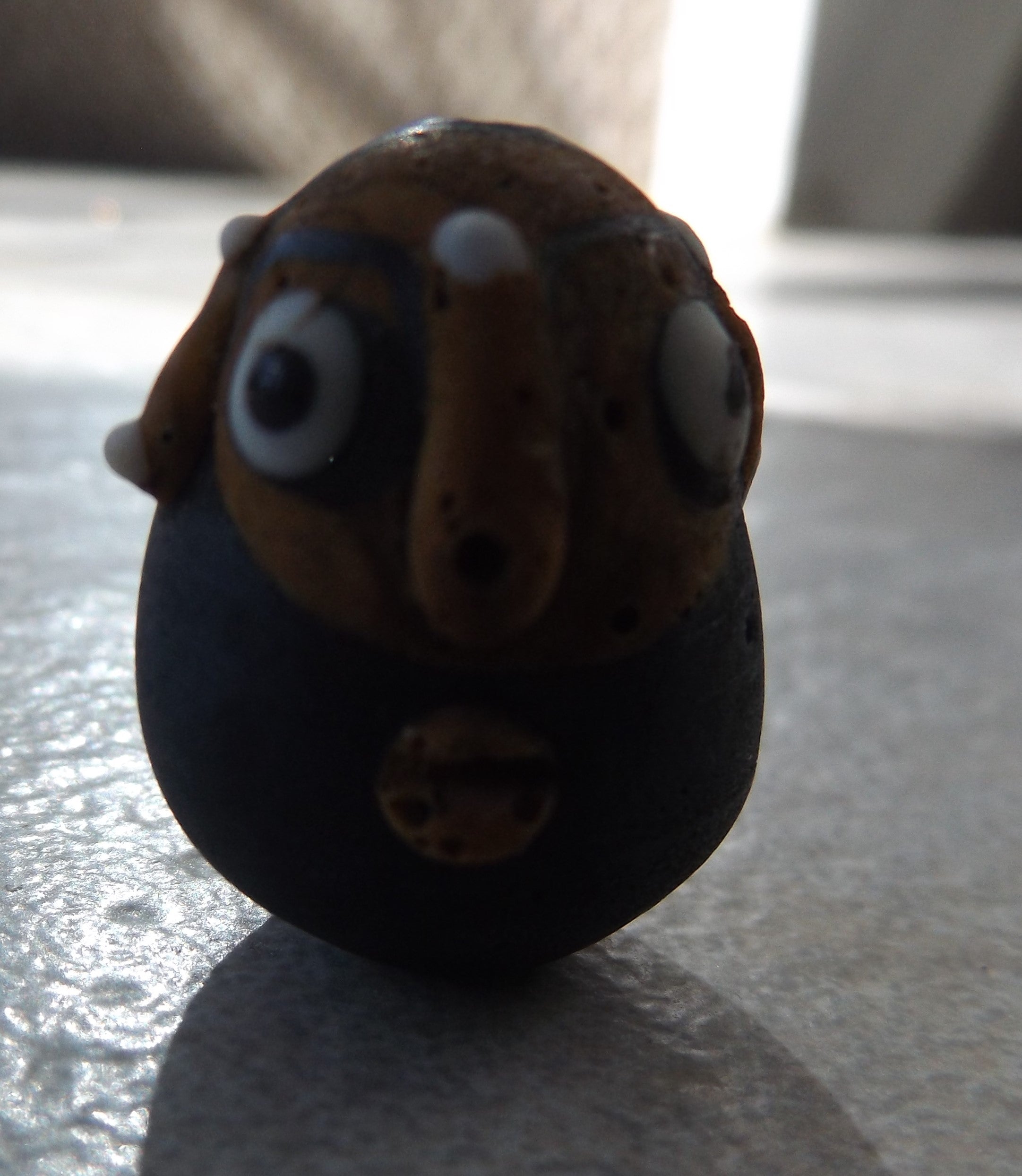 Bali Glass Bead (Puffy Man Black) 35 x 25. Handmade Lampwork