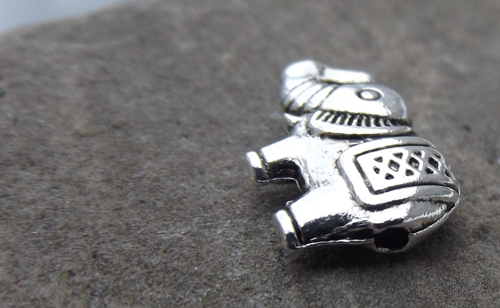 Antique Silver, 9x13x3mm, Hole: 1mm (hole runs from front to back of elephant. Through trunk and out his behind). Lead and Nickel Free