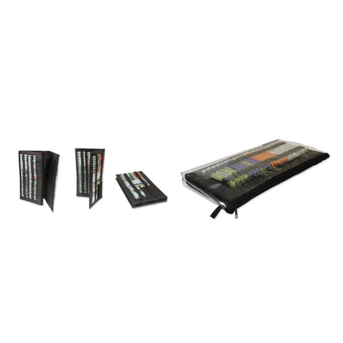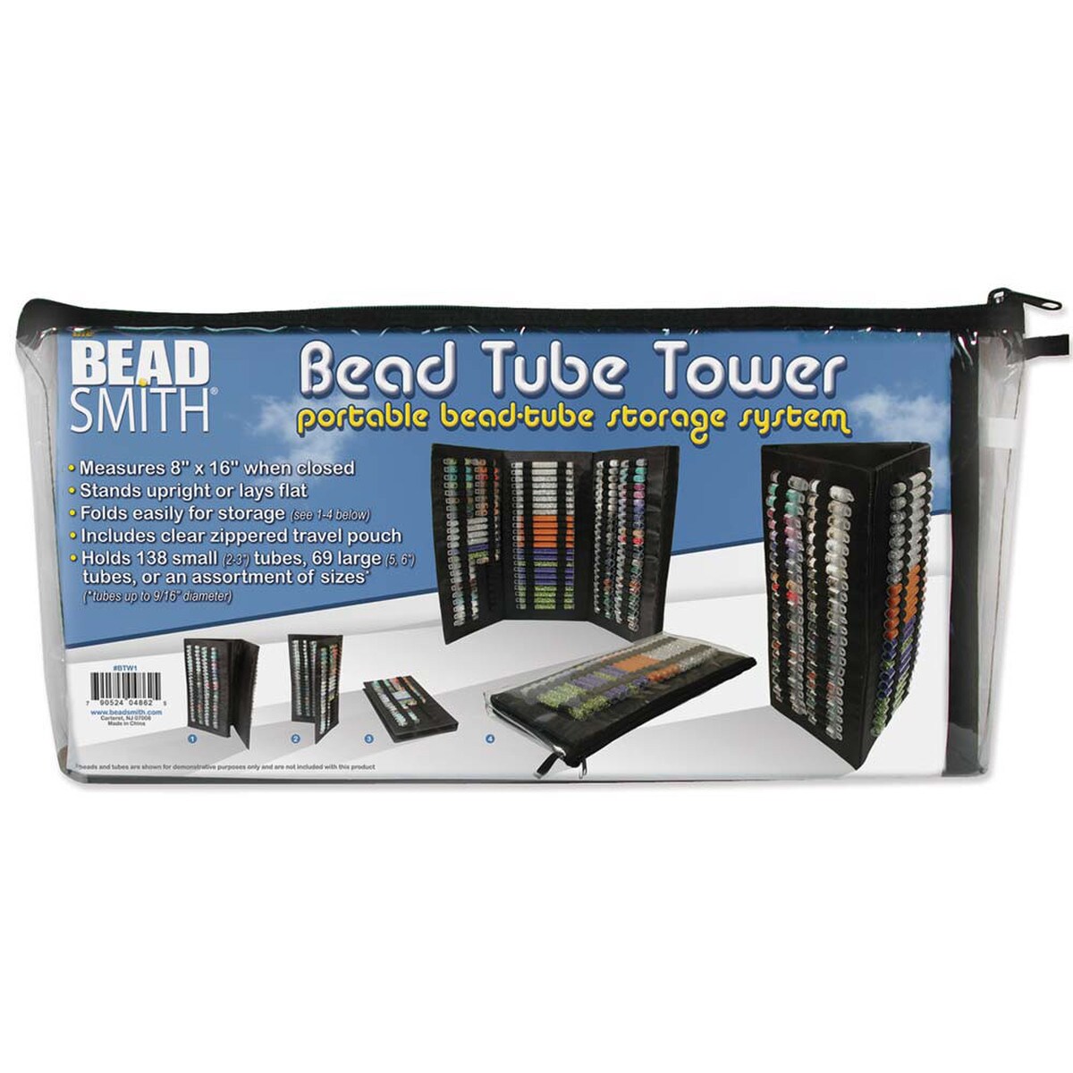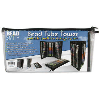 Organize, store and travel with all your beads using The Beadsmith’s Bead Tube Tower. You can slide your bead tubes into the elastics and secure them in place. Made of thick cardboard and wrapped in a vinyl-like fabric, the tower secures with a Velcro closure. The tower can stand upright or lay flat, folding easily for storage. Measuring 8 x 16 inches when folded, the organizers stand up to display tubes or lay down when working on projects. Included is a plastic zippered pouch that can be used to store the tower with tubes. The standard size carrying case holds 138 small (2 to 3-inch tubes), 69 large (5 to 6-inch tubes), or an assortment of sizes. The elastics hold all your plastic tubes securely in place, up to 9/16” in diameter. Although originally designed to for jewelry making, lot of hobbyists find the storage tower useful as well. Use it for diamond painting, nuts and bolts, buttons and other art projects. Stash this tube keeper with your looms, mats, trays and other beading and crafts supplies. Keep all your beads secure when you’re on-the-go when you bring your Tube Tower on a trip, to bead classes or just storage in a small space. Great for when you have a small area to be creative.
