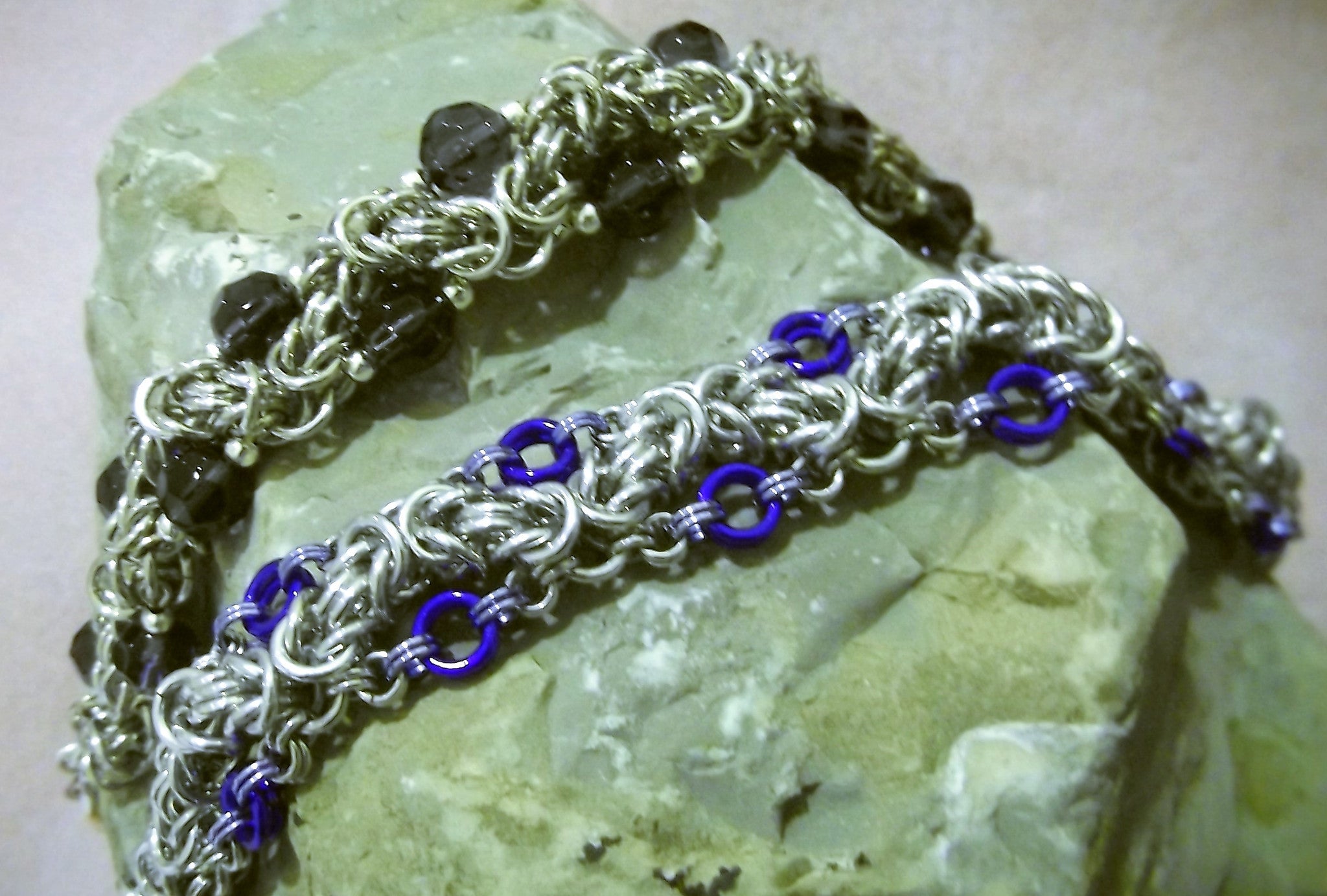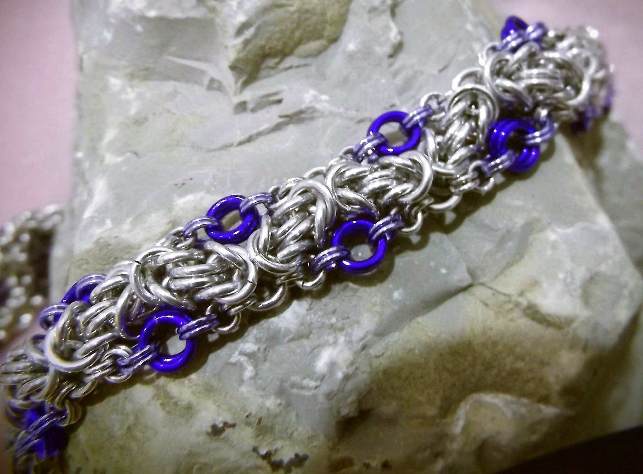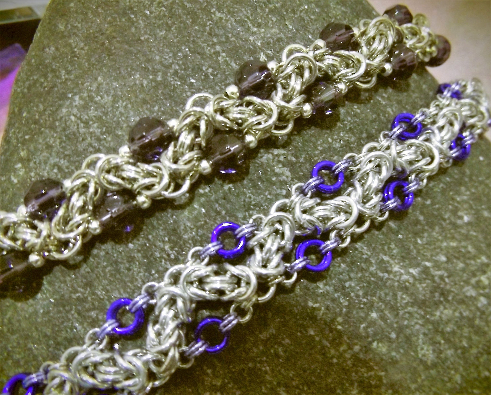 Complete Kit Makes 2 (two) Bracelets!  Both the Beaded AND the Ringed version of the Zig Zag Byzantine Bracelet!  Available in PDF (electronic pattern), Paper Instructions and the Complete Kit.    See drop down for options.  Bright Aluminum and Anodized Aluminum Rings with Beads and components needed to finish the project.  Full color instructions and photographs.  Additional tools required:  Chain nose pliers.