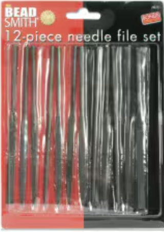 The Beadsmith Mini Needle File Set is an essential tool for detailed and intricate work on many different mediums. Made of high-grade steel, these 4-inch files come in a 12-piece set. Included in your purchase is a plastic carrying case with individual slots to keep your tools organized. The set includes: 2 round files, 2 triangle files, 1 knife file, 1 oval file, 2 flat blunt file, 2 flat tapered file, 1 half-round file, and 1 square file. Use these for de-burring and enlarging holes, smoothing curves, angles, and grooves. Reshape and level surfaces with precision. The long-lasting grain surface on the teeth of these small hand tools are perfect to use on wood, metal, jewelry, mirror, glass, tile, ceramics, leather, and plastics. Unlike diamond needle files, metal files should be used by working in one direction, filing gently away from you. Do not use a back-and-forth motion; this will dull the teeth and make them unusable. To clean your files, please use a stiff brush, keep them dry and store individually. Needle files are used by jewelers, clockmakers, watchmakers, woodworkers, metalworkers, model builders, metalsmiths, gunsmiths, and crafters. There are many uses for these tools and they would make an excellent birthday or Christmas gift for the artist or hobbyist in your life. Add these needle files to your crafting supplies today and unlock your artistic talents