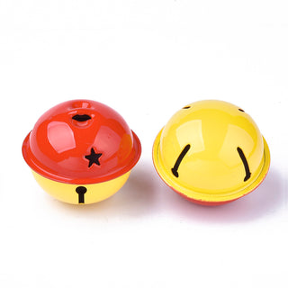 Bells (Iron). Two Tone (Red/Yellow). 33.5 x 40mm. Hole 8 x 3mm. (Packed 10 Bells)