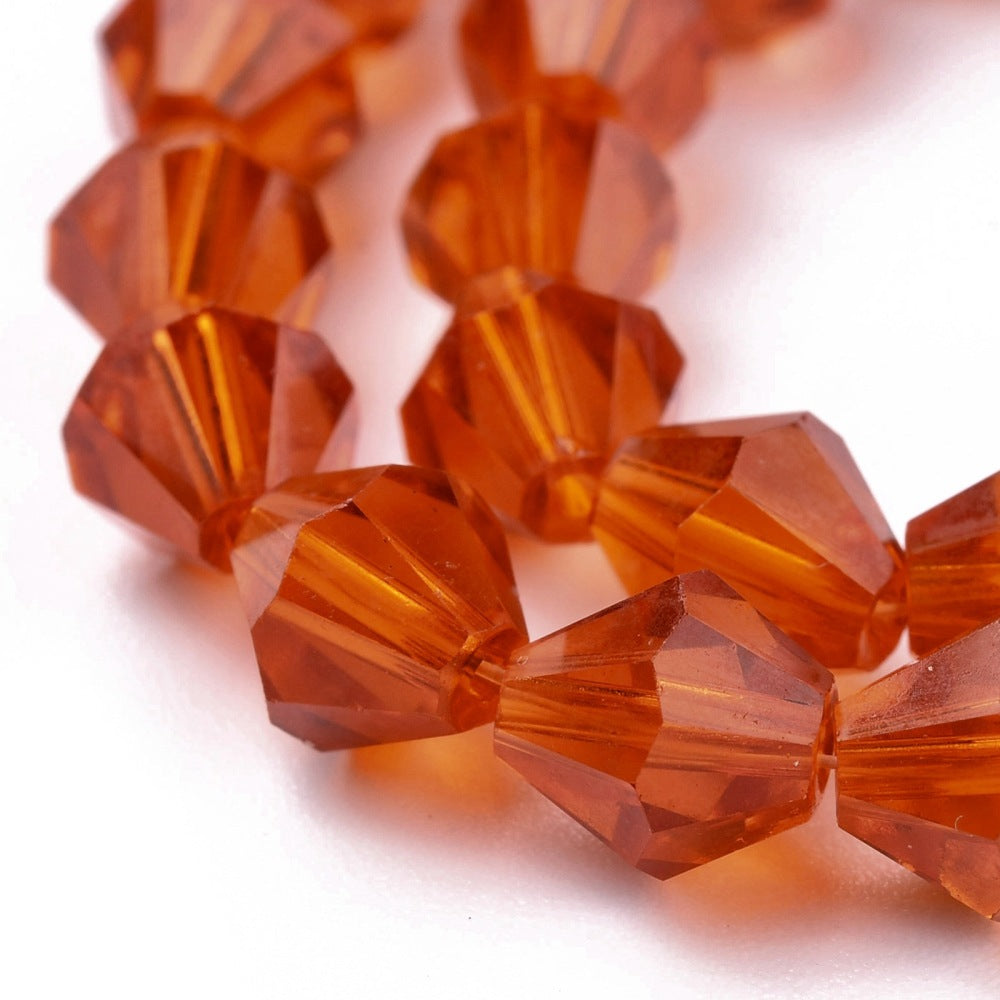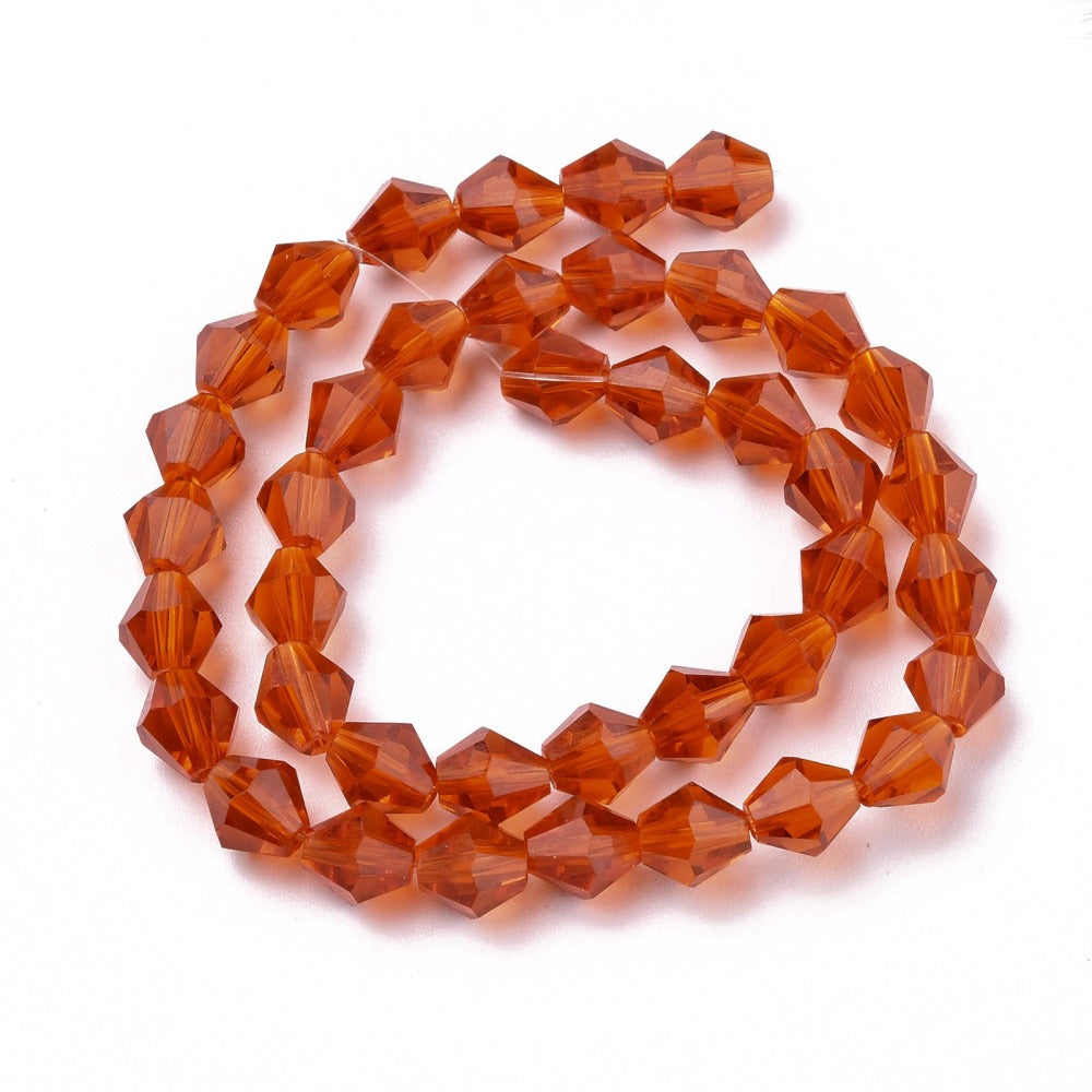 Bicone Beads Faceted. Glass 8mm. (Deep Orange). (Approx 40 Beads)