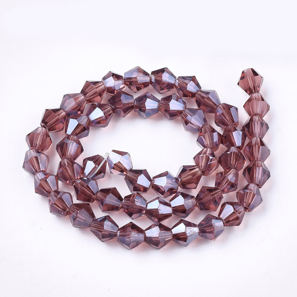 Bicone Beads Faceted. Glass 8mm. (Pearl Luster Plated Purple). (Approx 40 Beads)