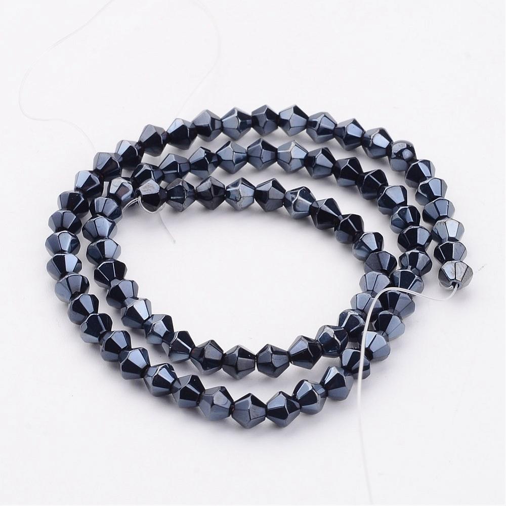 Bicone. Electroplate Glass Beads Strands, Faceted, Pearl Luster Plated over Black. 4mm. Hole: 1mm; about 104pcs/strand