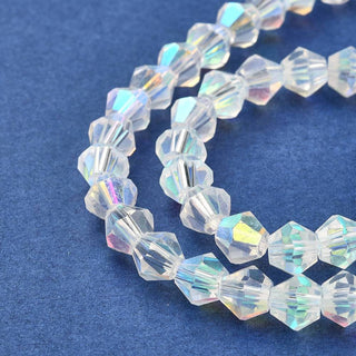 Bicone (Glass) *Half AB Plated over Clear. 6mm size. (approx 46 beads strand).
