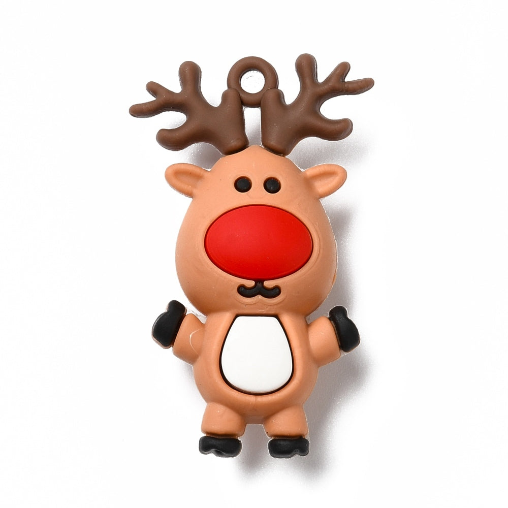 BIG Charm/Pendant. PVC Plastic Cartoon Big Pendant, REINDEER. 58x28x16 mm, Hole: 3mm. Sold Individually.