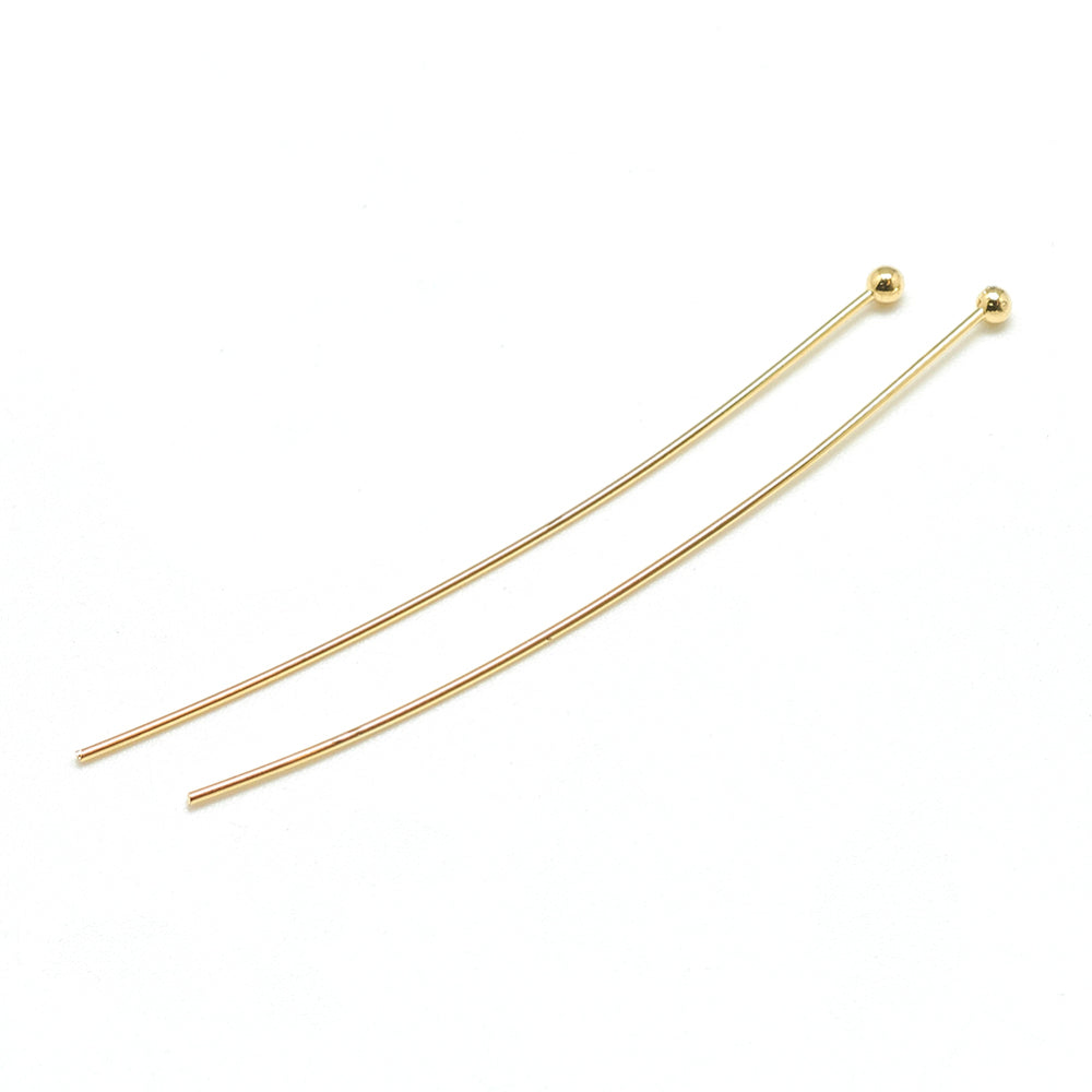 Brass Ball Head Pins, Real 18K Gold Plated, 50x0.8mm, 20 Gauge, Head: 2mm. (*Packed 20 Pins)