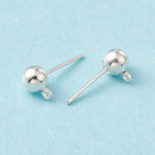 Brass Ball Post Ear Studs, with Loop & 304 Stainless Steel Pins, Silver, 15.2~15.7x5mm, Hole: 1mm, Pin: 0.7mm. (Packed 10 Ear Wires/ 5 Pair)