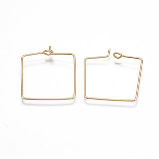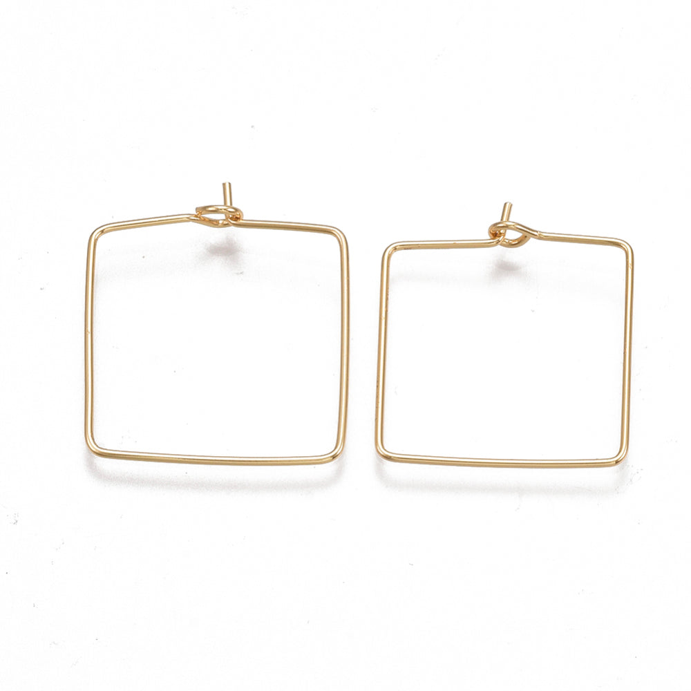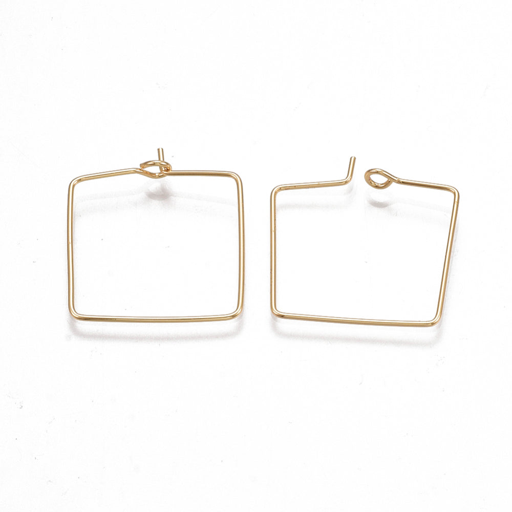 Brass Earring Hooks, N Real 18K Gold Plated, Rectangle, 20 Gauge, 24.5~26x21~22x0.8mm, Pin: 0.8mm.(Packed 10)