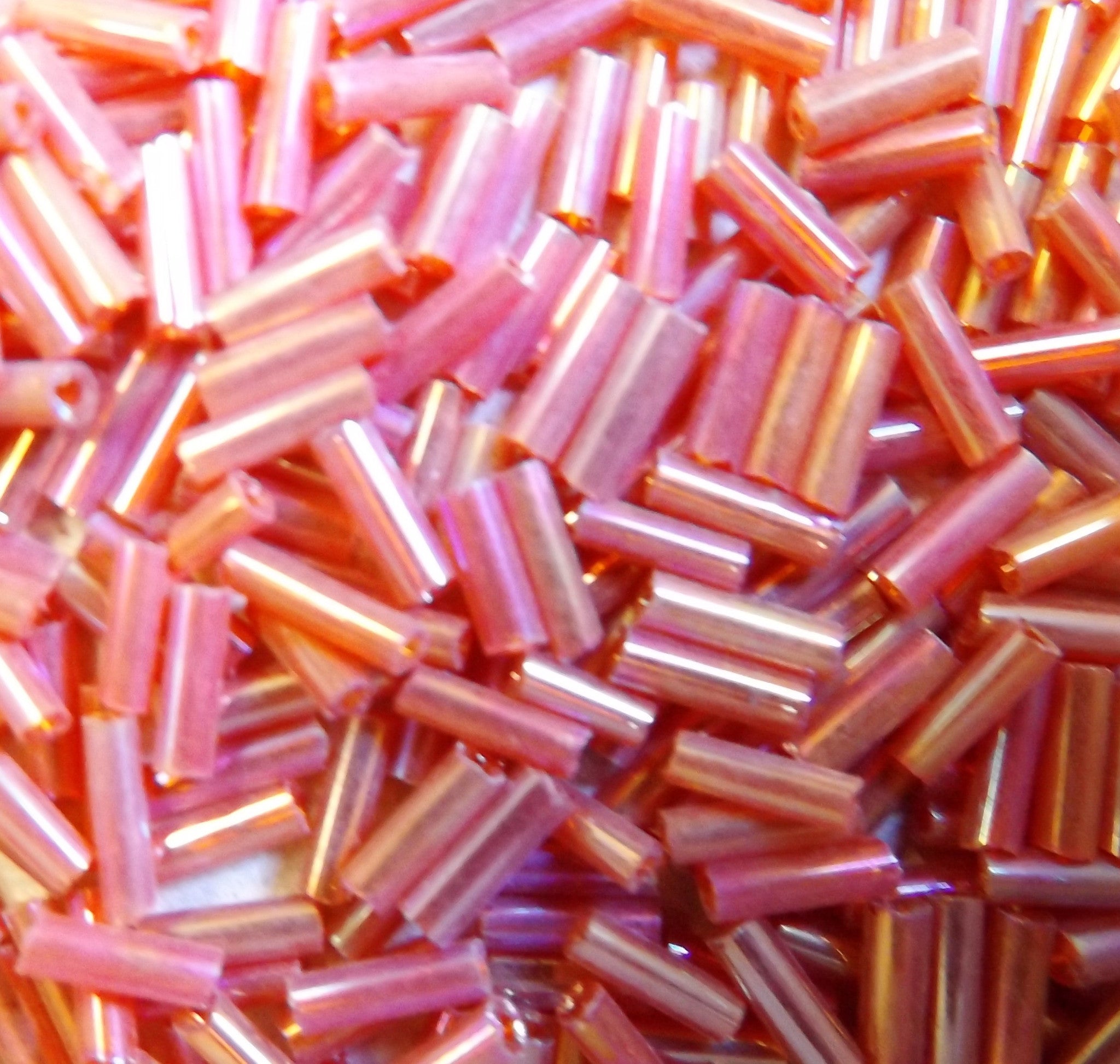 Bugle Beads (Glass) 1.6mm x 6mm (approx 15gr) *Rustic Red w/ AB Finish