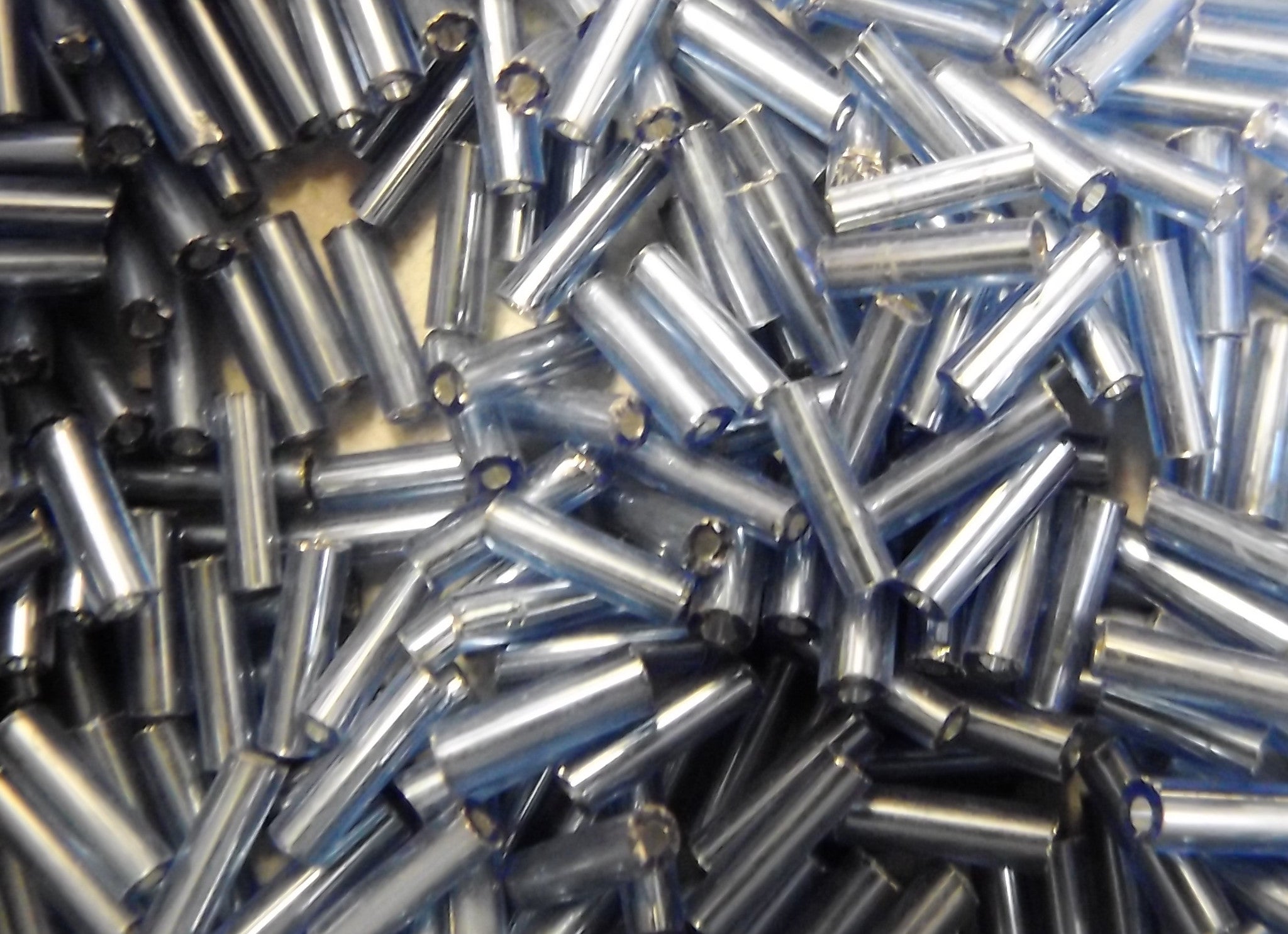 Bugle Beads (Glass) 1.6mm x 6mm (approx 15gr) *Silver Lined Steel Blue