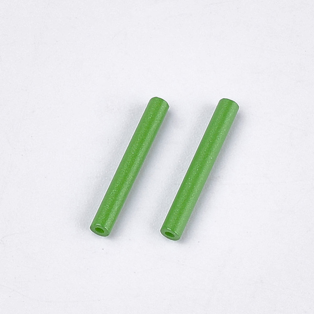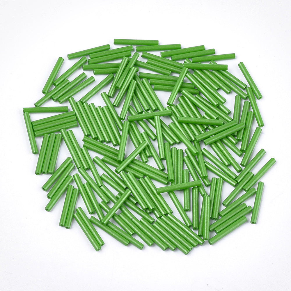 Bugle Beads (Glass)15~15.5x2mm, Hole: 0.8mm. (approx 15gr) *Opaque Mid Green